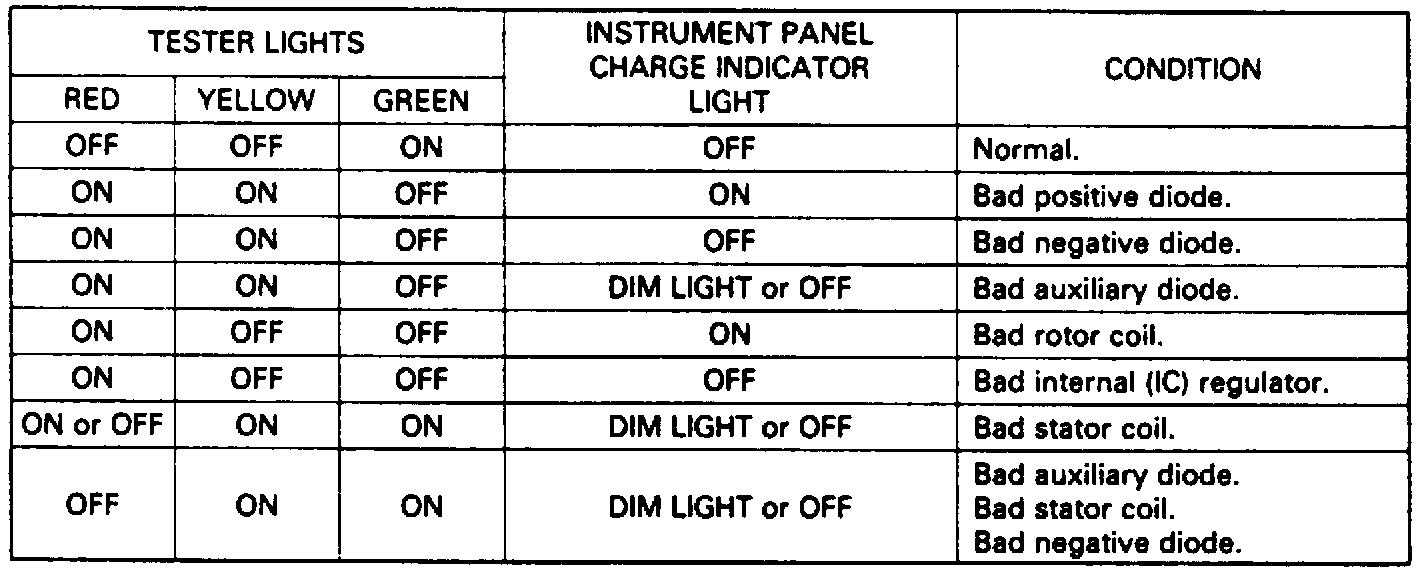 use Isuzu Charging System Tester and refer to
