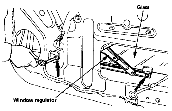 ^ Disconnect the window regulator motor harness connector (w/power window).