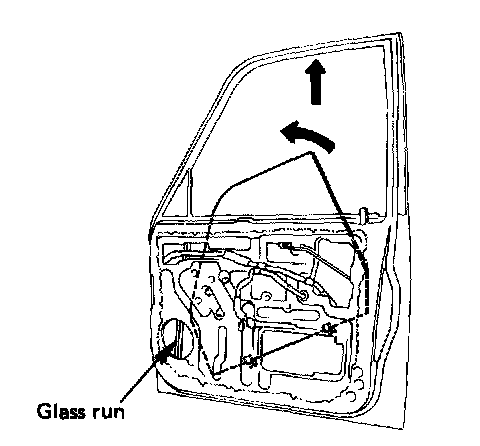 1. Apply soap and water to the door frame groove and insert the glass run to the door frame from the � corner in the arrow-marked directions.