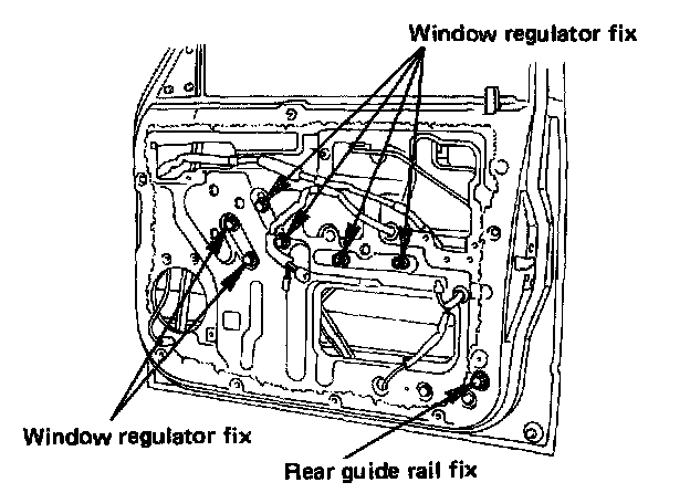 3. Tighten the window regulator and glass fixing bolts and nuts to the specified torque.