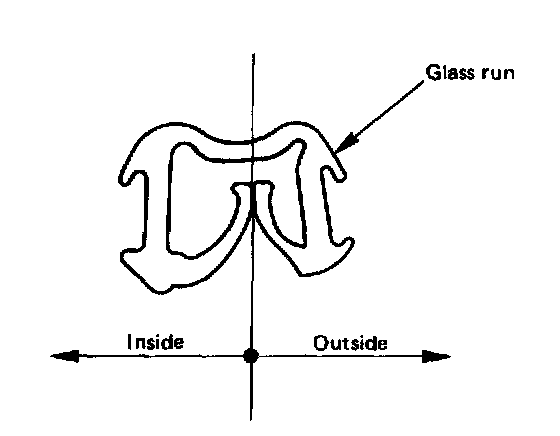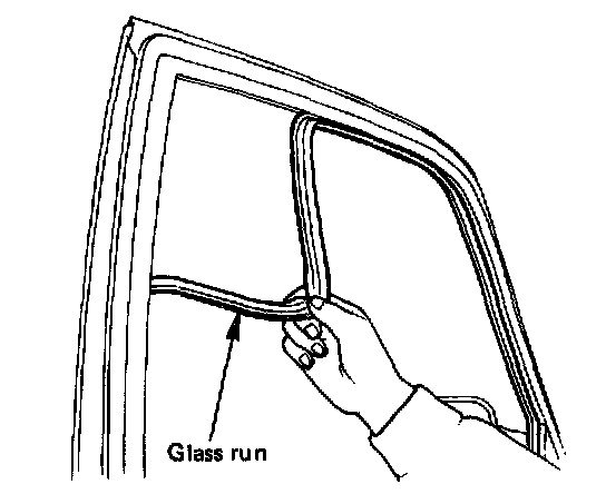 Install the glass run with its wider end pointed to the inside of the vehicle.