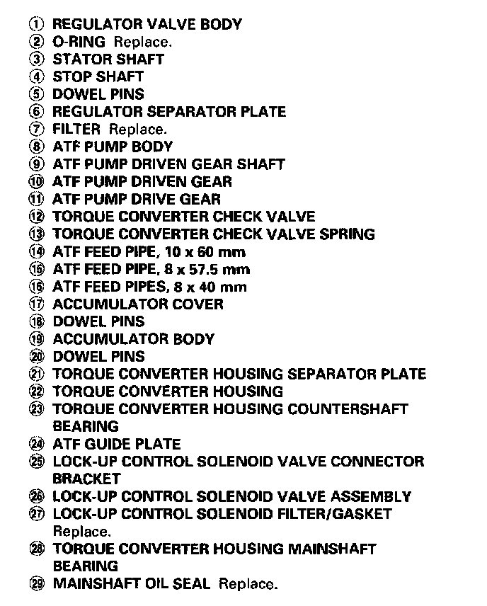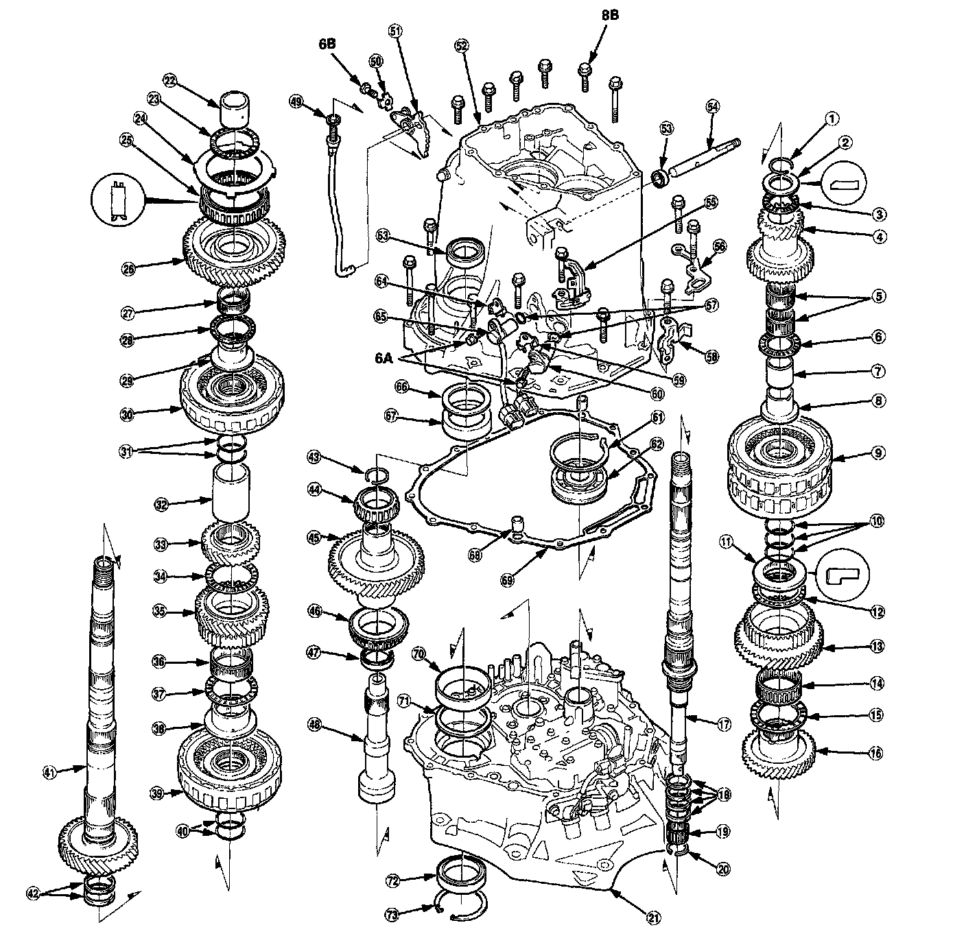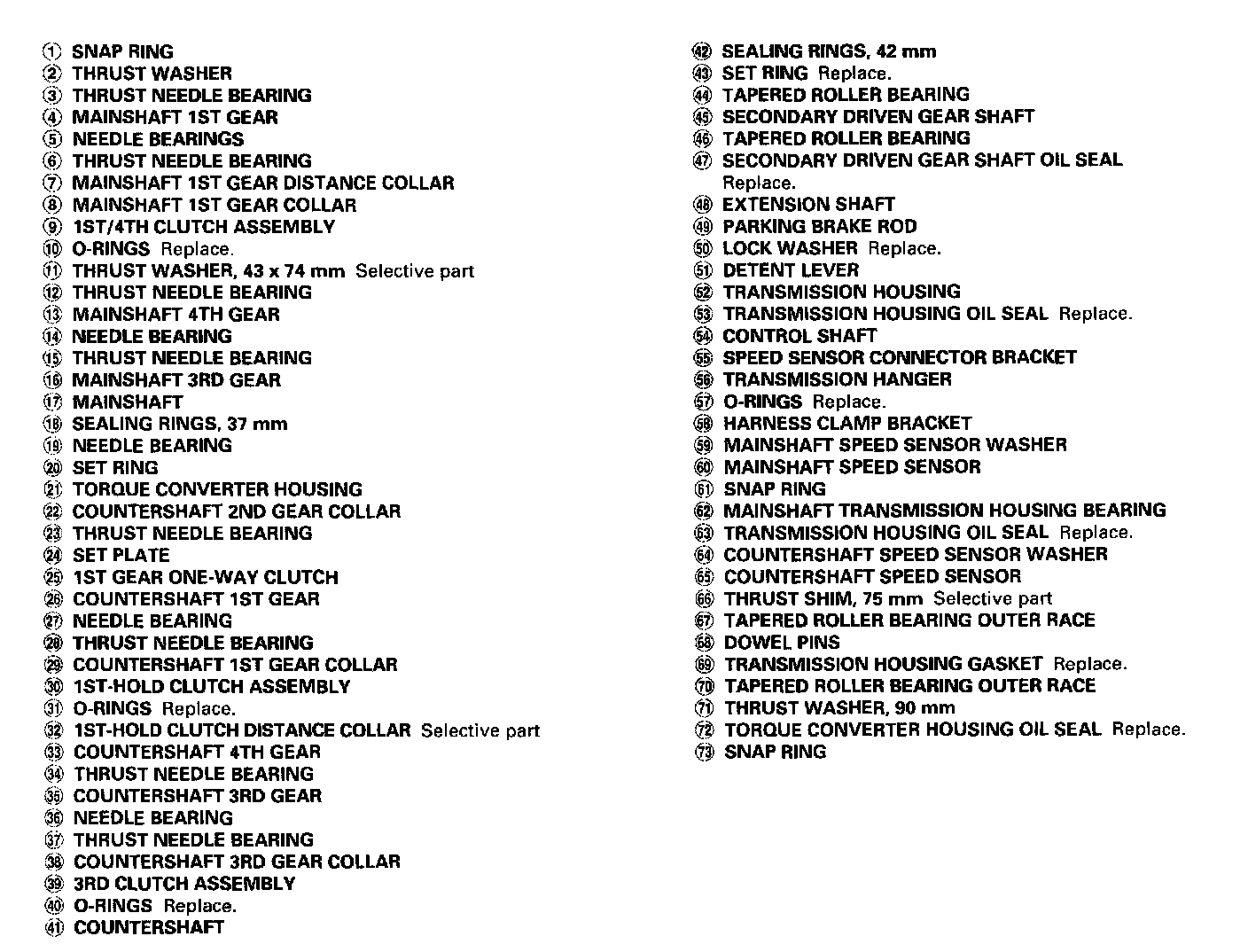 - Parts (71) and (73) are used on '96 models with the transmission No. M5HA - 1000001 to M5HA - 1014322; '96 models with the transmission No. M5HA - 1014323 and above, and '97 -'98 models do not use these parts.