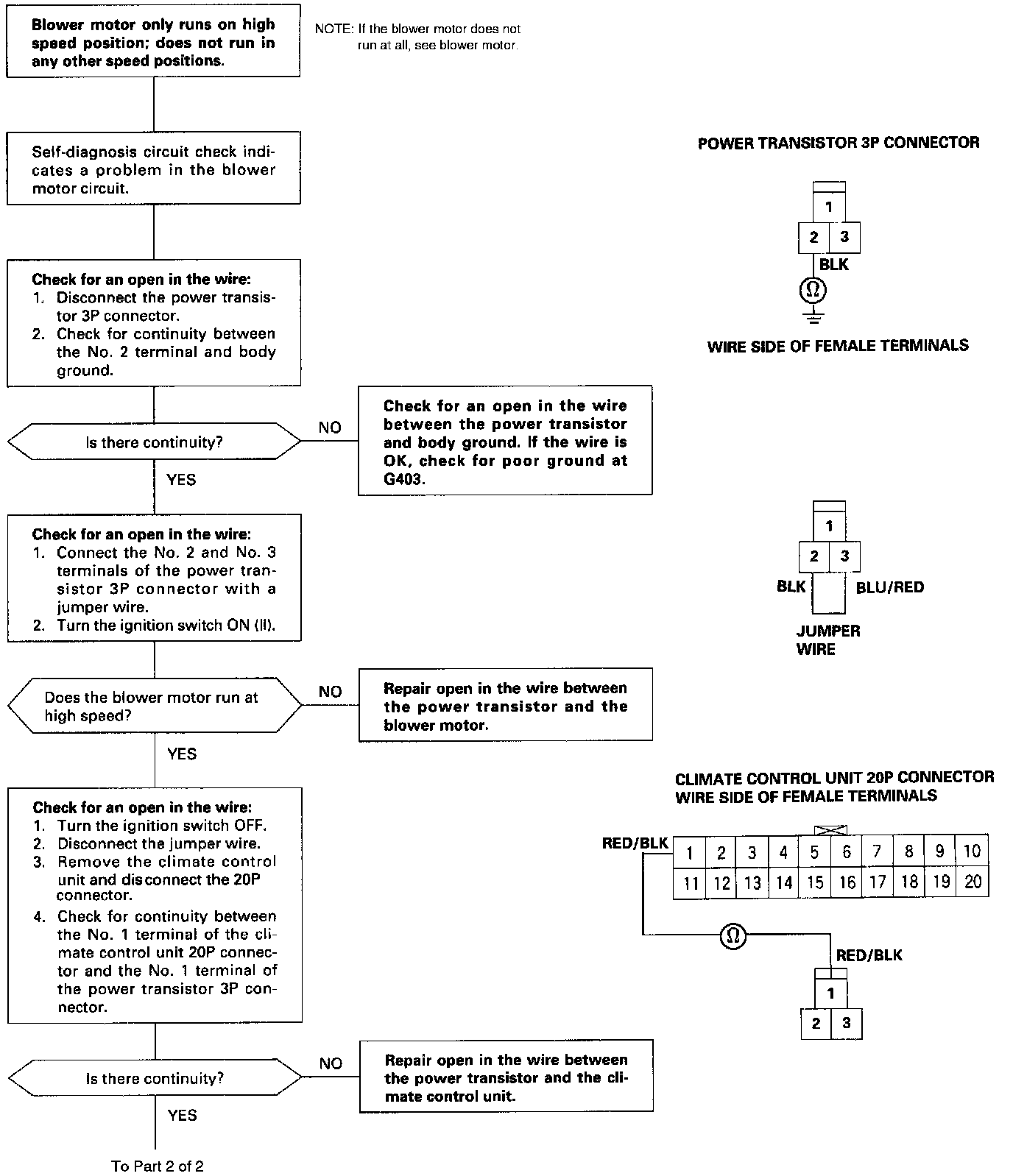 NOTE: If the blower motor does not run at all refer to Blower Motor troubleshooting