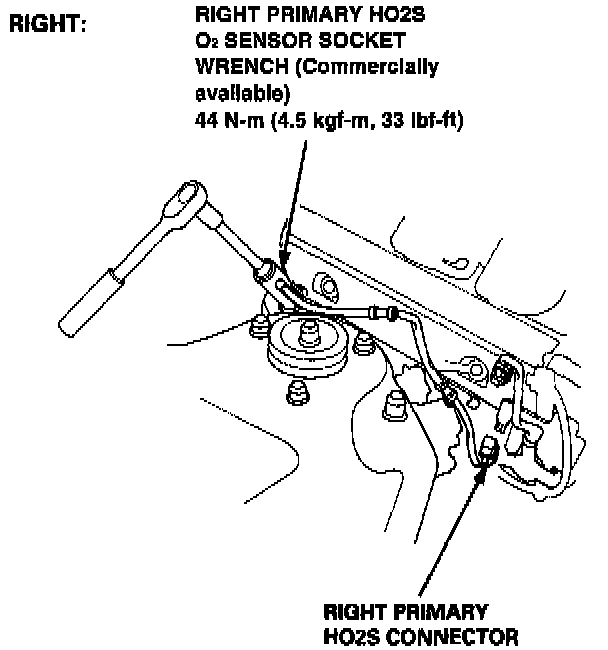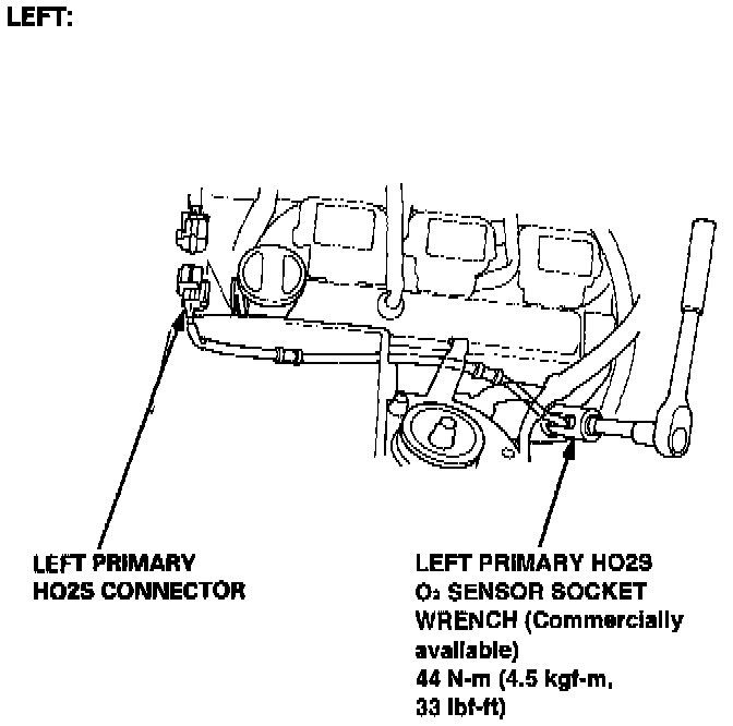 1. Disconnect the left and/or right primary HO2S connector, then remove the left and/or right primary HO2S.