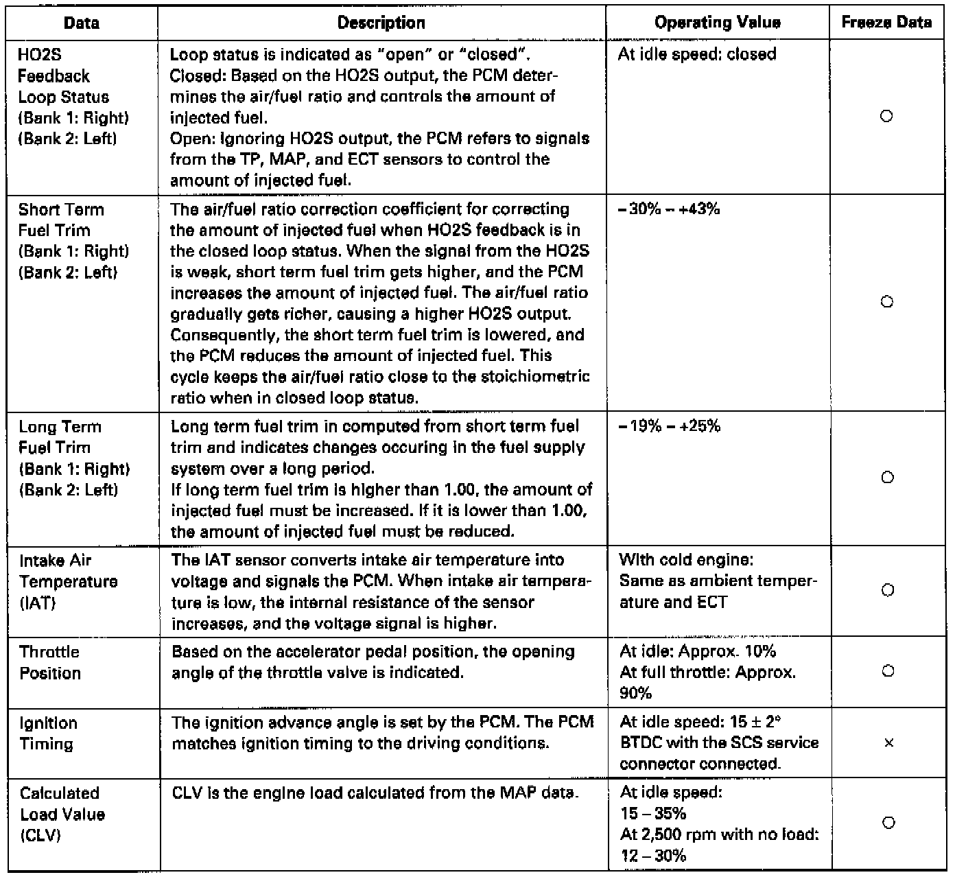 - The "operating values" given above are approximate values and may be different depending on the environment and the individual vehicle.