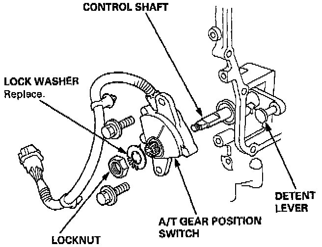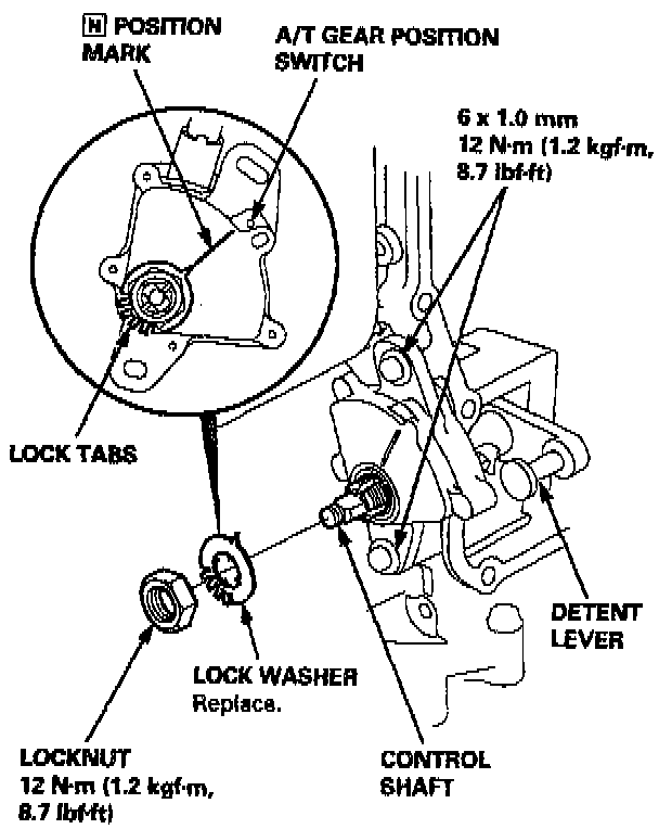 5. Tighten the locknut while holding the detent lever in the N position, then bend the lock tabs against the locknut.