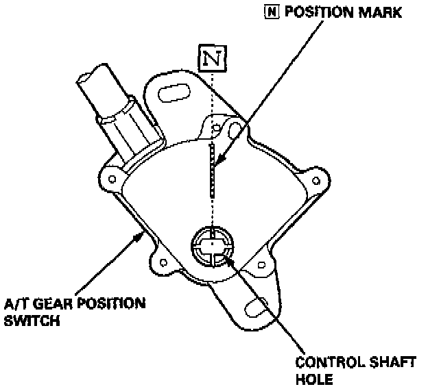 4. Install a new lock washer on the A/T gear position switch by aligning its projected tip with the N position mark on the A/T gear position switch as shown.