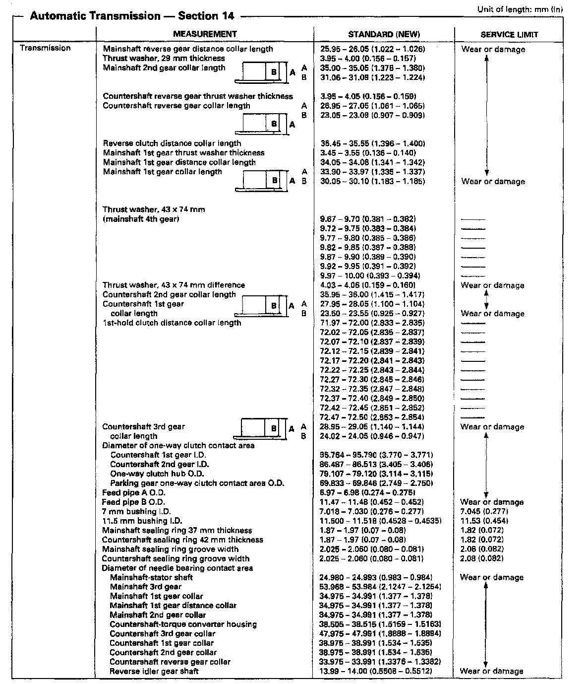 M5HA 4-spd A/T, Mainshaft/Countershaft Measurements: