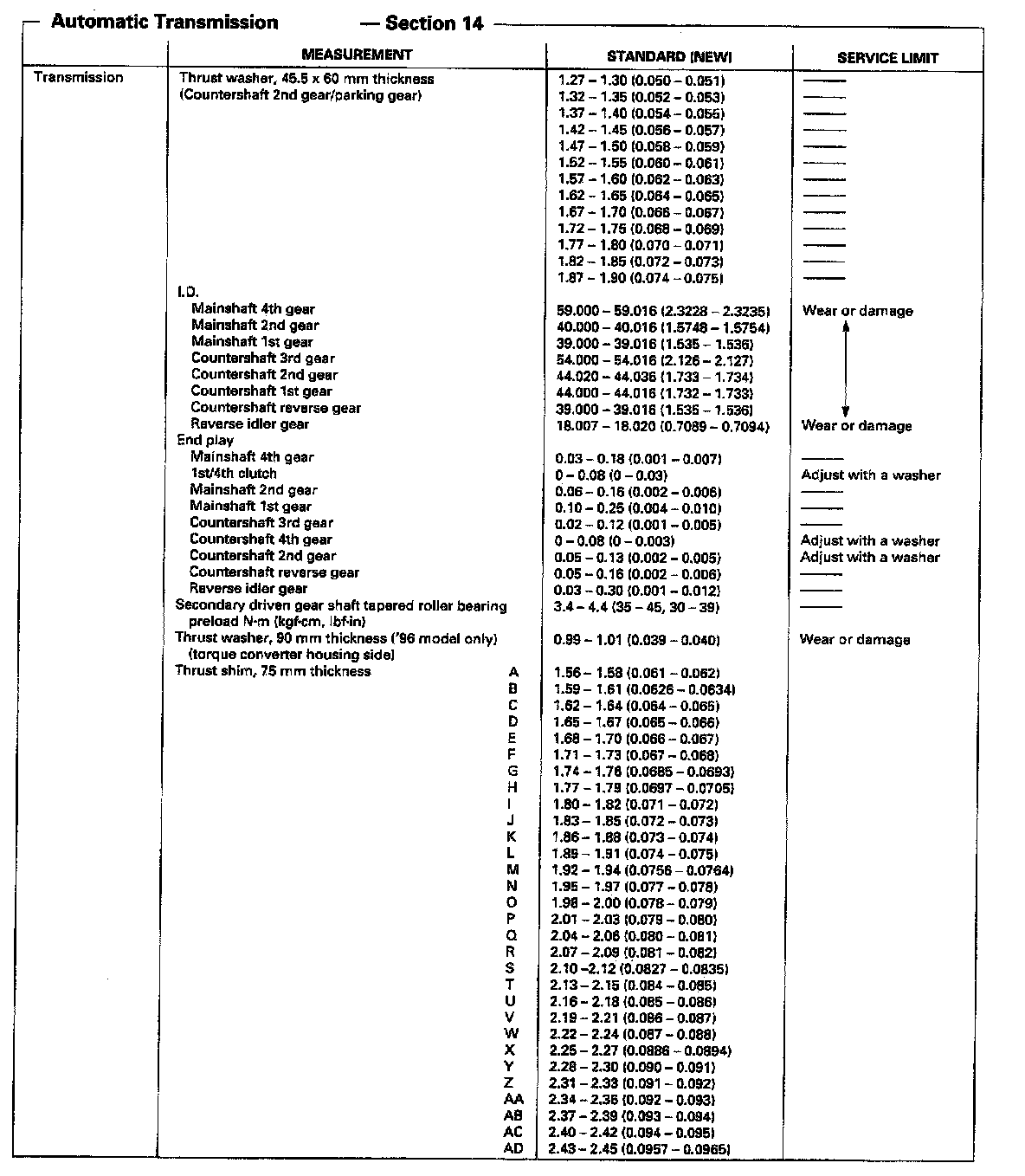 M5HA 4-spd A/T, Transmission Measurements: