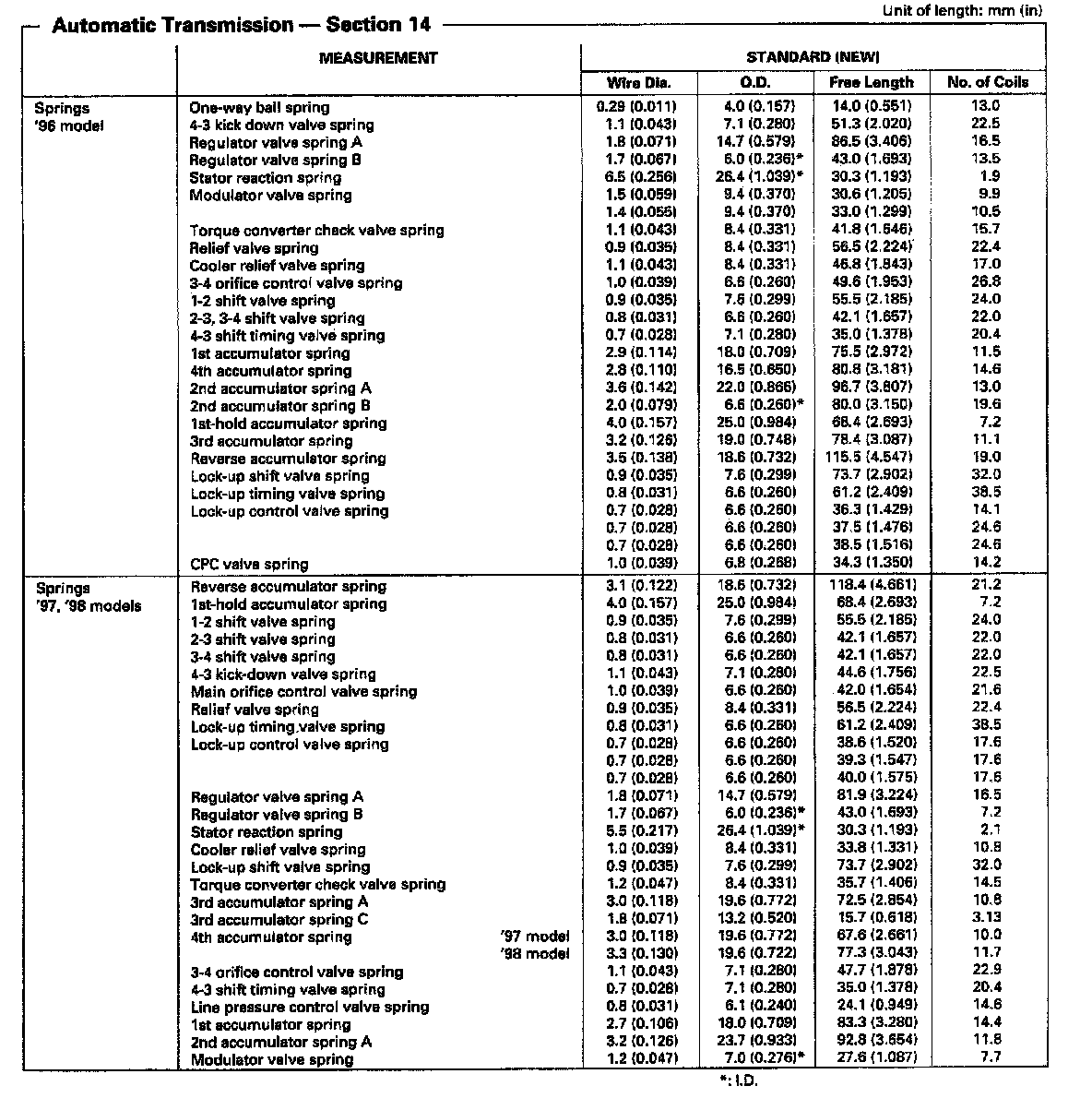 M5HA 4-spd A/T, Transmission Springs By Model Year: