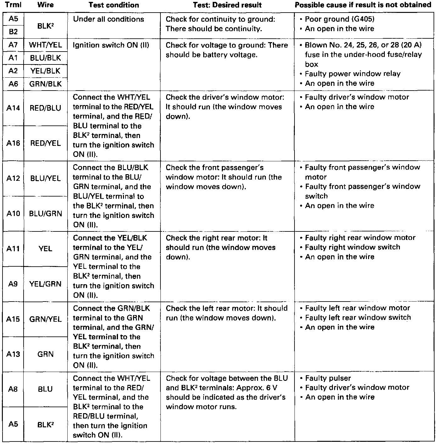 - If all the input tests prove OK, the power window master switch must be faulty; replace it.