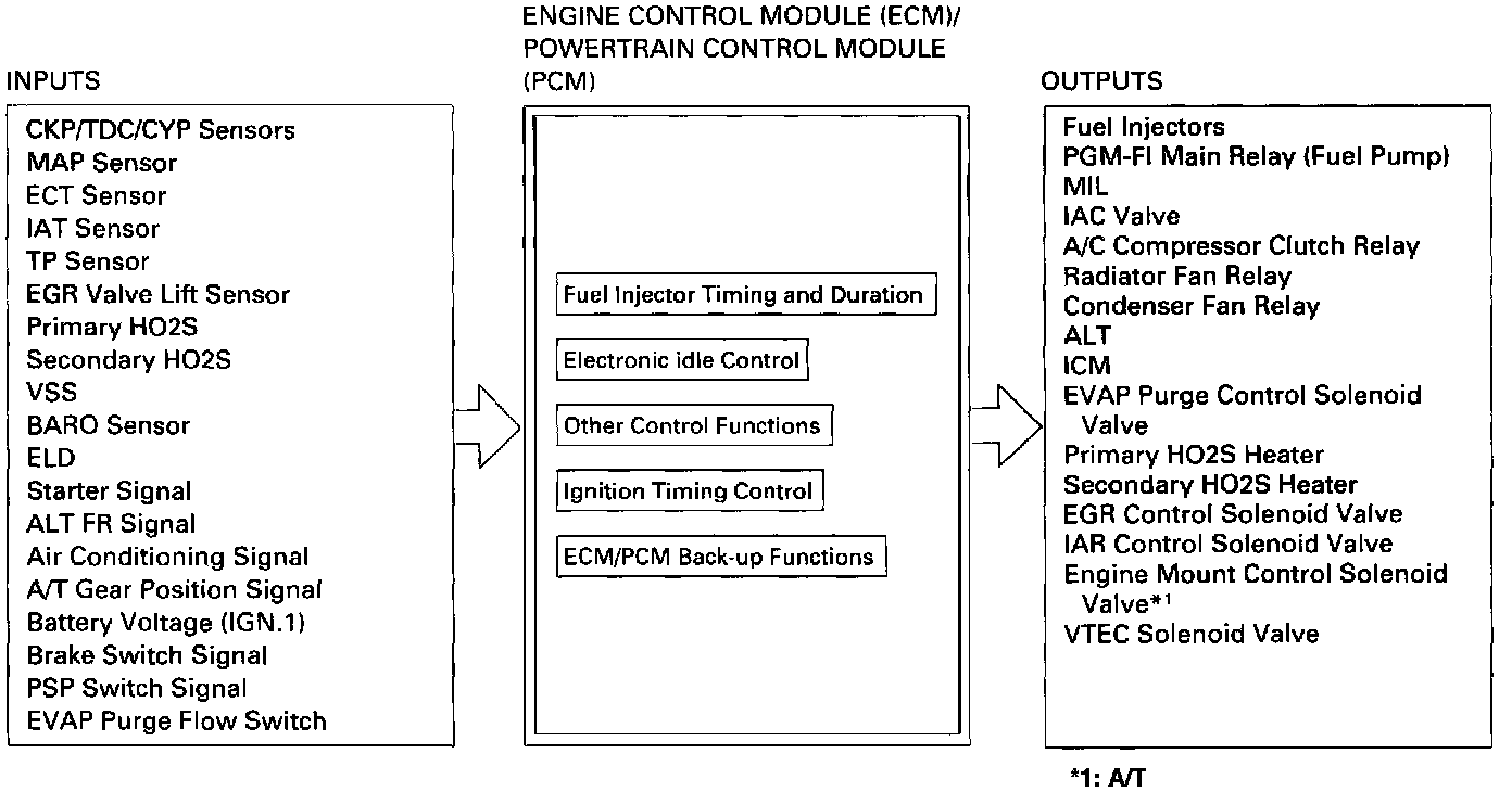 When an abnormality occurs in the ECM/PCM itself, the fuel injectors are controlled by a back-up circuit independent of the system in order to permit minimal driving.