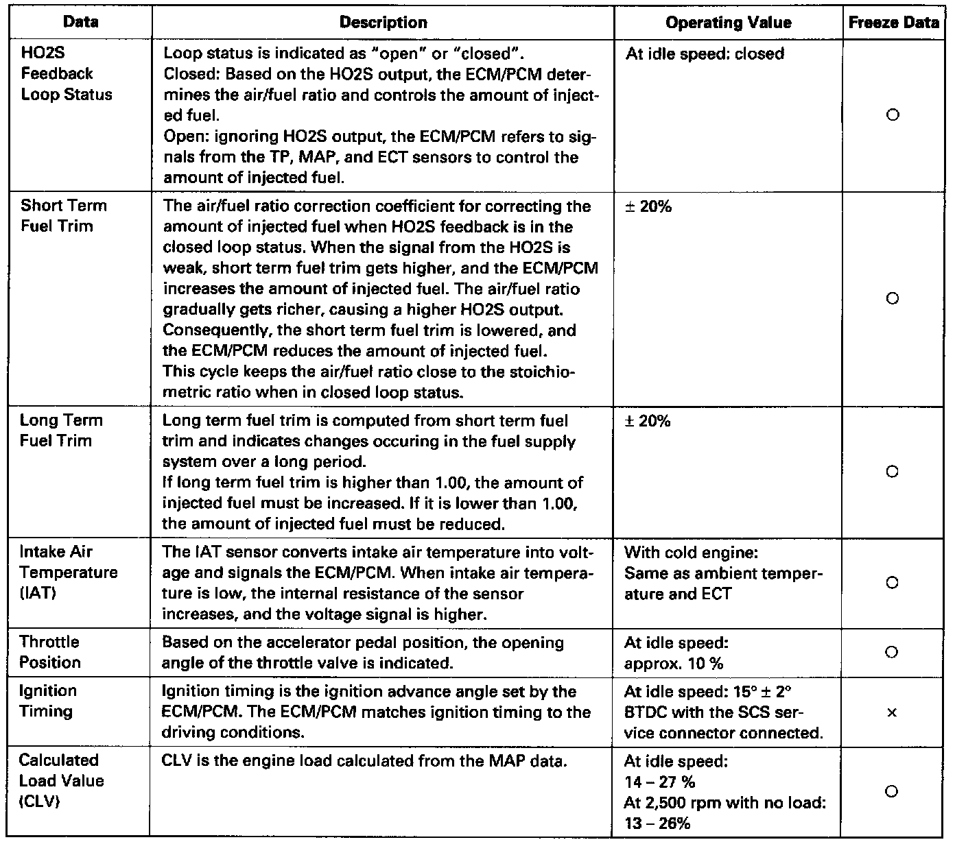 By connecting the OBD II scan tool or the Honda PGM Tester to the 16P data link connector (DLC), various data can be retrieved from the ECM/PCM. The items listed in the table below conform to the SAE recommended practice.