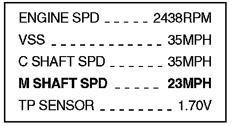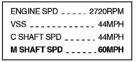 ^ If the mainshaft speed value is lower than the countershaft speed and VSS values, as shown, and you have these conditions: