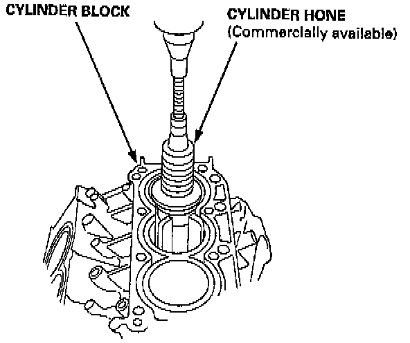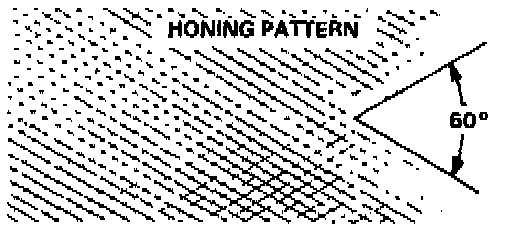 1. Measure the cylinder bores as shown in System Diagnosis. If the cylinder block is to be reused, hone the cylinders and remeasure the bores.2. Hone the cylinder bores with honing oil and a fine (400 grit) stone in a 60° crosshatch pattern.