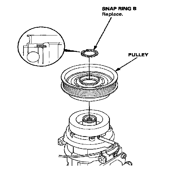 3. Remove the snap ring B with snap ring pliers. then remove the pulley.