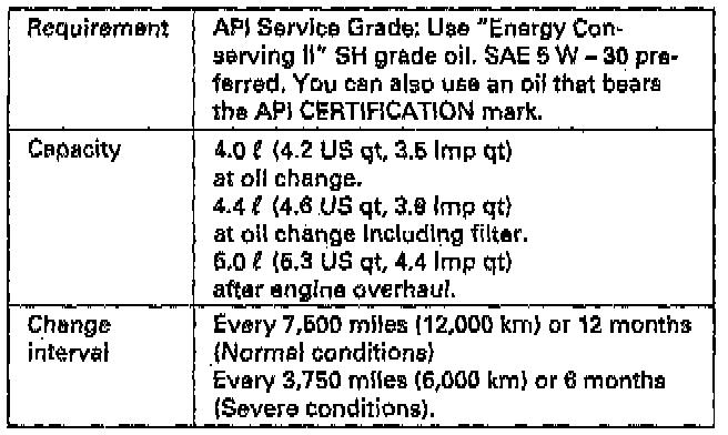 Engine Oil ReplacementWARNING: Remove the drain bolt carefully while the engine is hot; the hot oil may cause scalding.