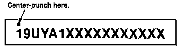 8. Center-punch a completion mark above the first character of the engine compartment VIN.