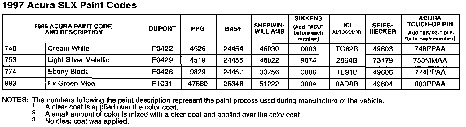 1997 Acura Paint Codes