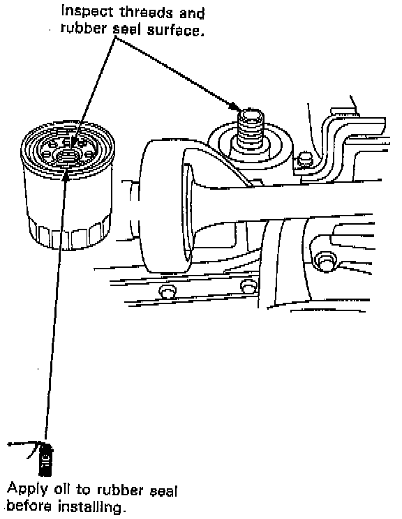 2. Inspect the threads and rubber seal on the new filter. Wipe off seat on engine block, then apply a light coat of oil to the filter rubber seal.