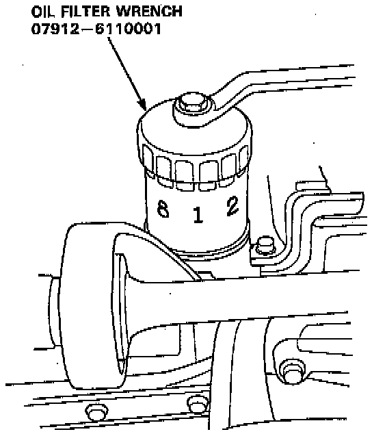 CAUTION: After the engine has been run, the exhaust pipes will be hot; be careful when working around the exhaust manifold.1. Remove the oil filter with the special oil filter wrench.