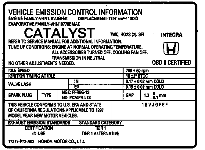 Integra GS-R Sedan L4-1797cc 1.8L DOHC (VTEC) MFI
