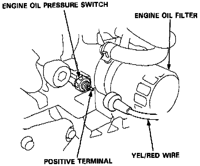 1. Remove the YEL/RED wire from the engine oil pressure switch.
