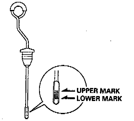4. Remove the dipstick and check the fluid level. It should be between the upper and lower marks.