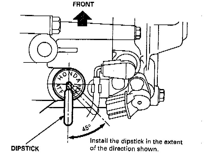5. If the level is below the lower mark, add fluid into the tube to bring it to the upper mark. Use Honda Premium Formula Automatic Transmission Fluid or an equivalent DEXRON II Automatic Transmission Fluid (ATF) only.