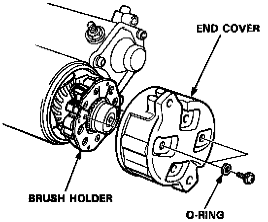 2. Install the armature in the housing. Next pry back each brush spring again and push the brush down until it seats against the commutator, then release the spring against the end of the brush.