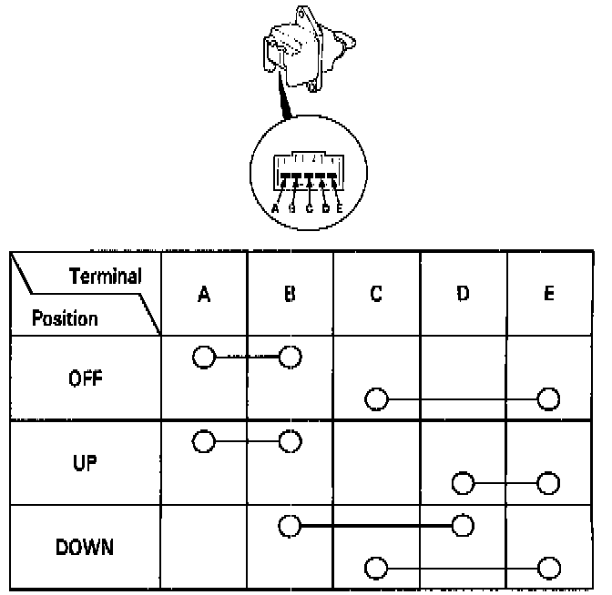 3. Check for continuity between the terminals in each switch position according to the table.
