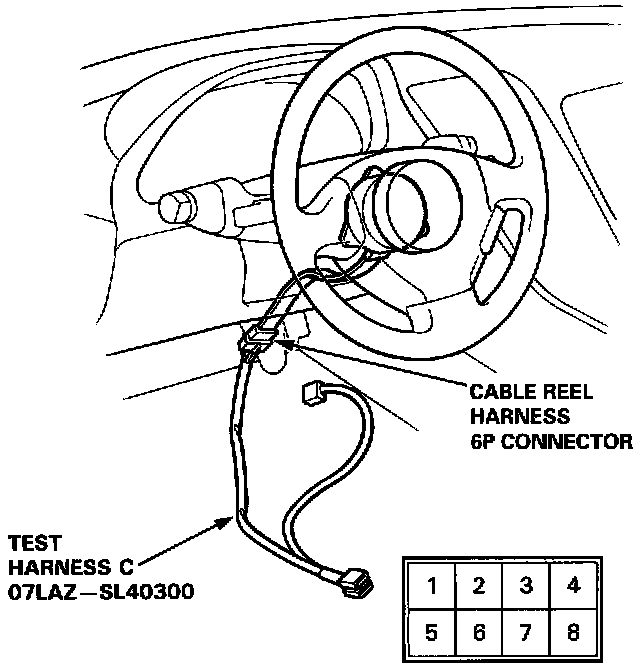 1. Disconnect the cable reel harness and main harness 6P connector. Connect test harness C only to the cable reel harness side of the 6P connector.