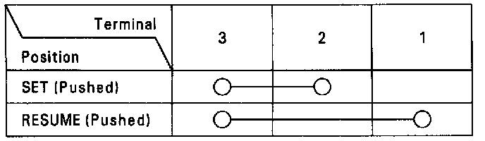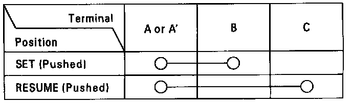 CAUTION: Before disconnecting any part of an SRS wire harness, connect the short connectors.SET/RESUME Switch Test:
