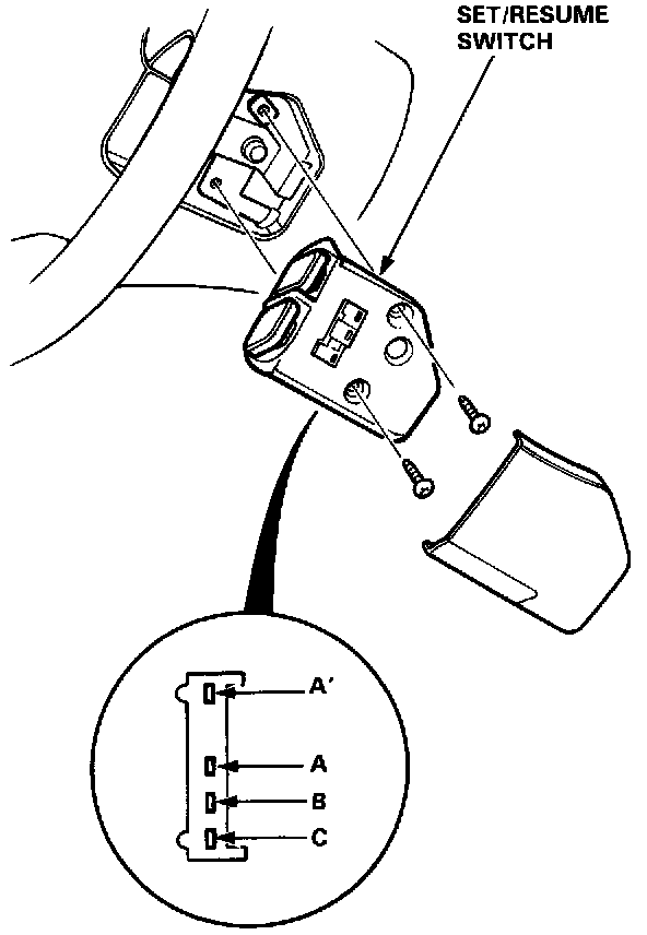 3. Remove the switch cover from the SET/RESUME switch, then remove the SET/RESUME switch by removing the two screws.