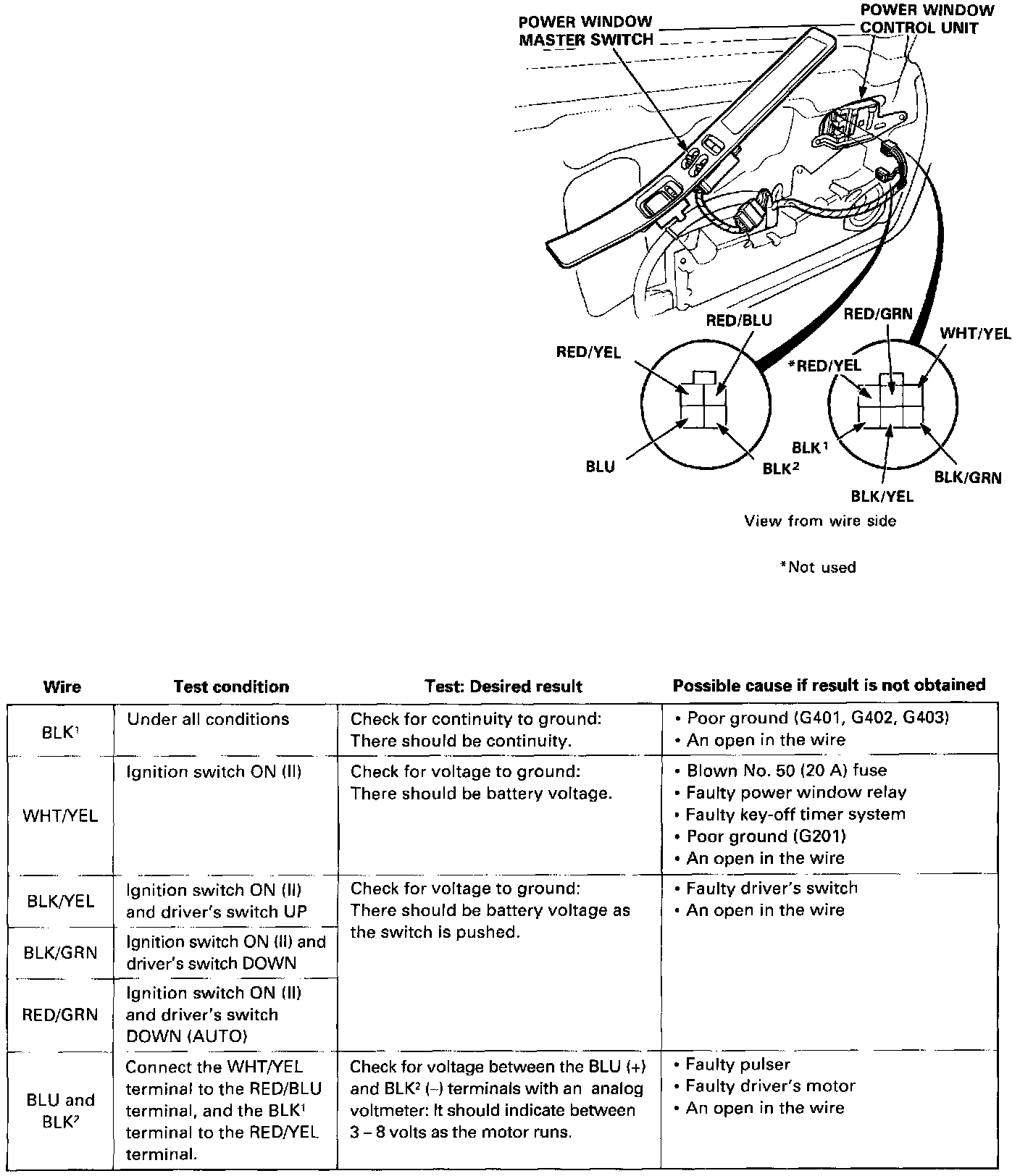 NOTE: The control unit only controls the driver's door window.