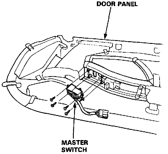 Remove the four screws, then remove the power window master switch from the door panel.