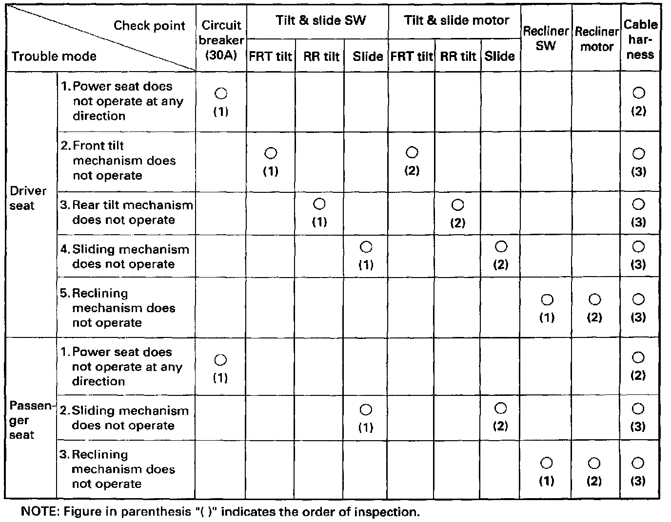 1. POWER SEAT DOES NOT OPERATE AT ANY DIRECTION
