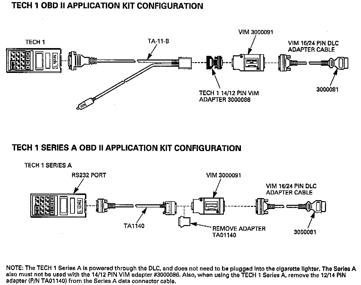 TECH 1 OBD II/TECH 1 SERIES A OBD II Application Kit Configuration: