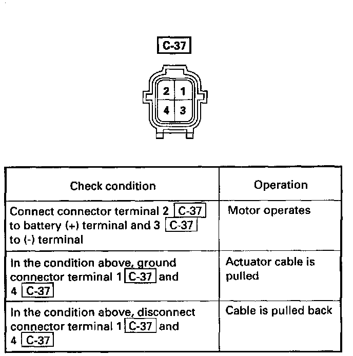 Apply the battery voltage between the pump & VSV connector terminals, and check to see if the motor and actuator operate smoothly.