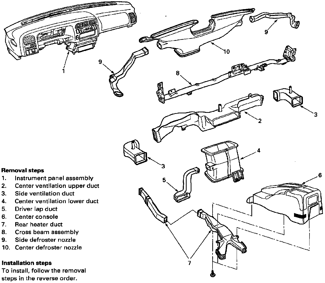 Rear Heater Duct, Defroster Nozzle and Ventilation Duct: