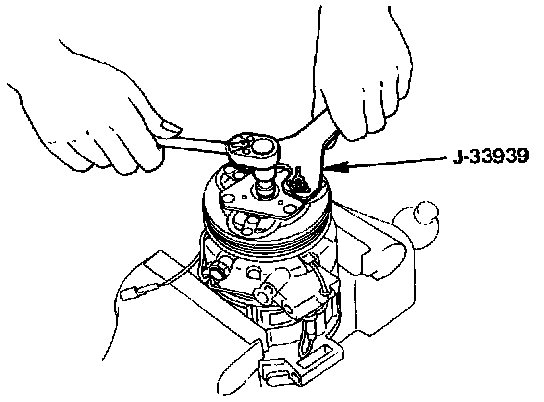 ^ Using pulley installer (J-33940) and drive handle (J-8092) to install the pulley assembly.
