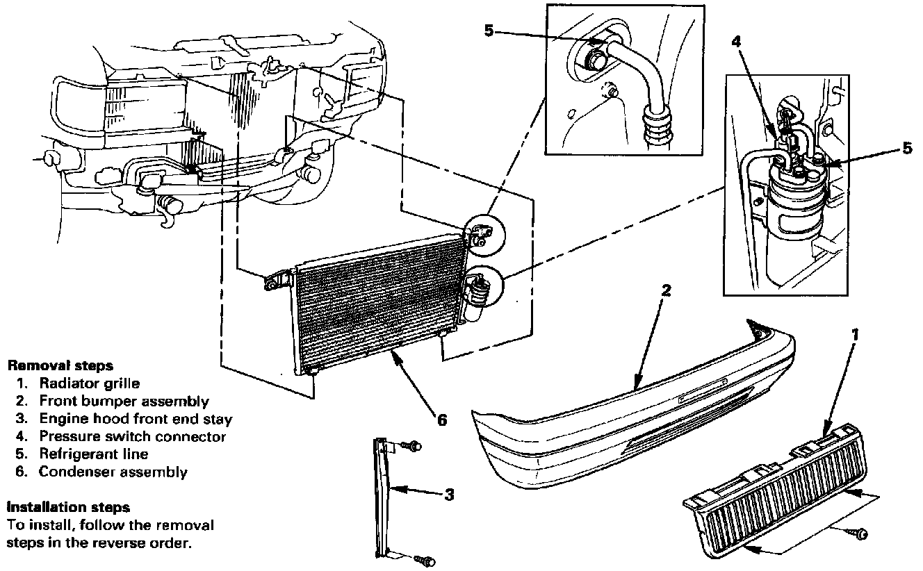^ If installing a new condenser, be sure to add 3O cc (1.0 fl.oz.) of new compressor oil to a new one.