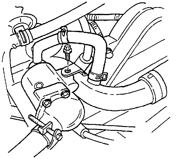 8. Remove the rear bolt from the bracket that secures the upper coolant pipe.