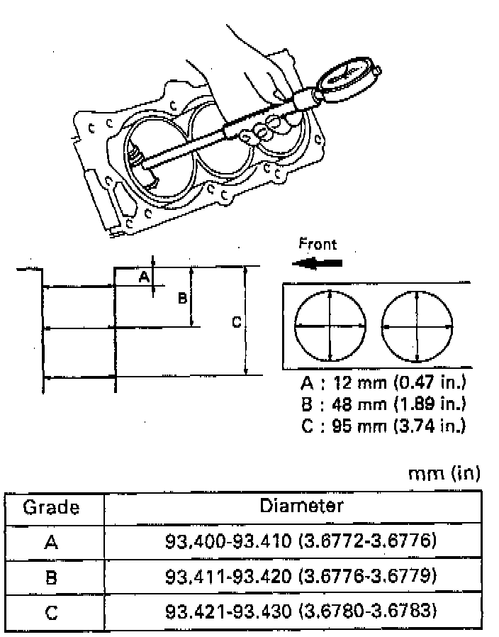 - Cylinder bore inside diameter limit: 93.530 mm (3.6823 inch)