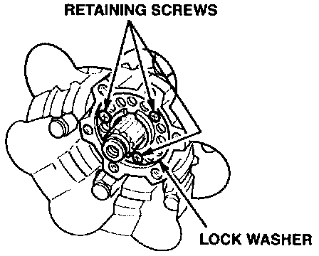7. Inspect the lock washer and the three retaining screws. Check the tightness of the retaining screws.