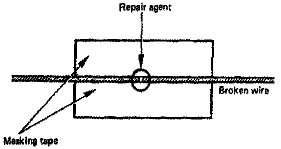 1. Clean broken wire tips with white gasoline.2. Place masking tape along both sides of wire to be repaired.