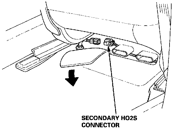 1. Move the front passenger's seat forward. Pull the carpet back to expose the secondary HO2S connector.