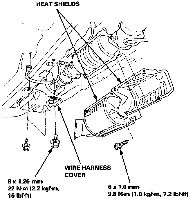 NOTE: Check that the clearance is more than 4 mm (0.2 inch) between the heat shields and rear side of the TWO as shown. If the clearance is less than 4 mm (0.2 inch), loosen the 6 x 1.0 mm bolts on the heat shields and tighten them adjusting the clearance.