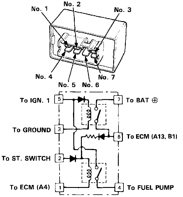 NOTE: If the car starts and continues to run, the PGM-FI main relay is OK.1. Remove the PGM-FI main relay.