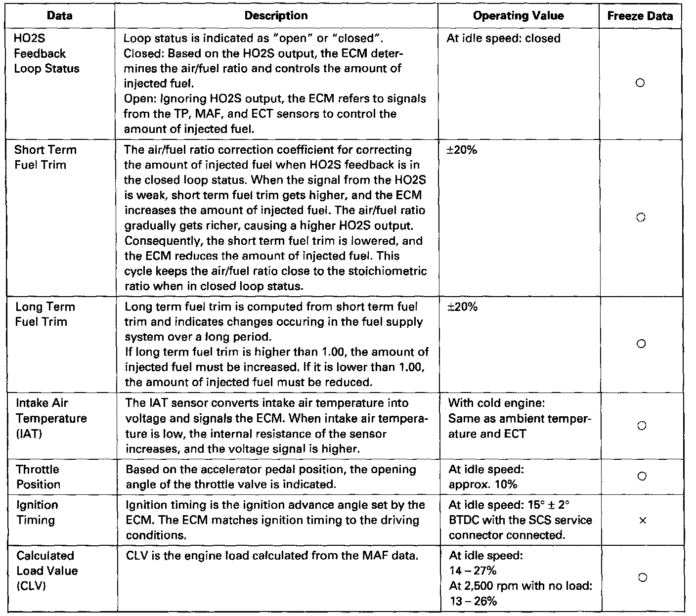 - The "operating values" given below are approximate values and may be different depending on the environment and the individual vehicle.